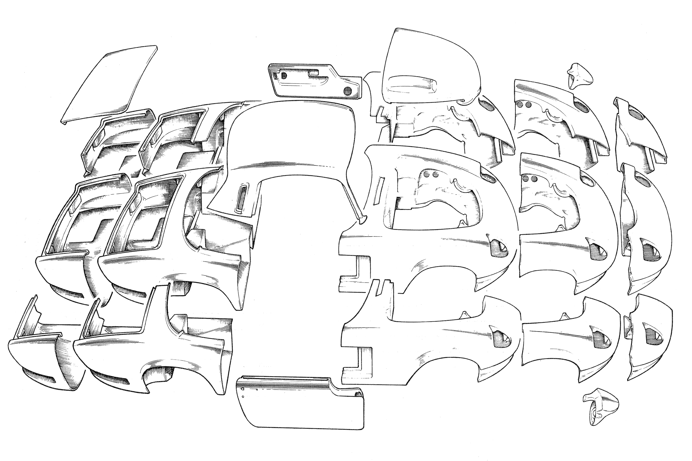 The Lotus Elan was first introduced in October 1962 was sold either as a complete car or in kit form. Designed as practical every day and has become an icon of the 60s. Styled by Ron Hickman who previously worked for Ford. The floor and wheel arches were made in one mould alongside the upper section before being bonded together.